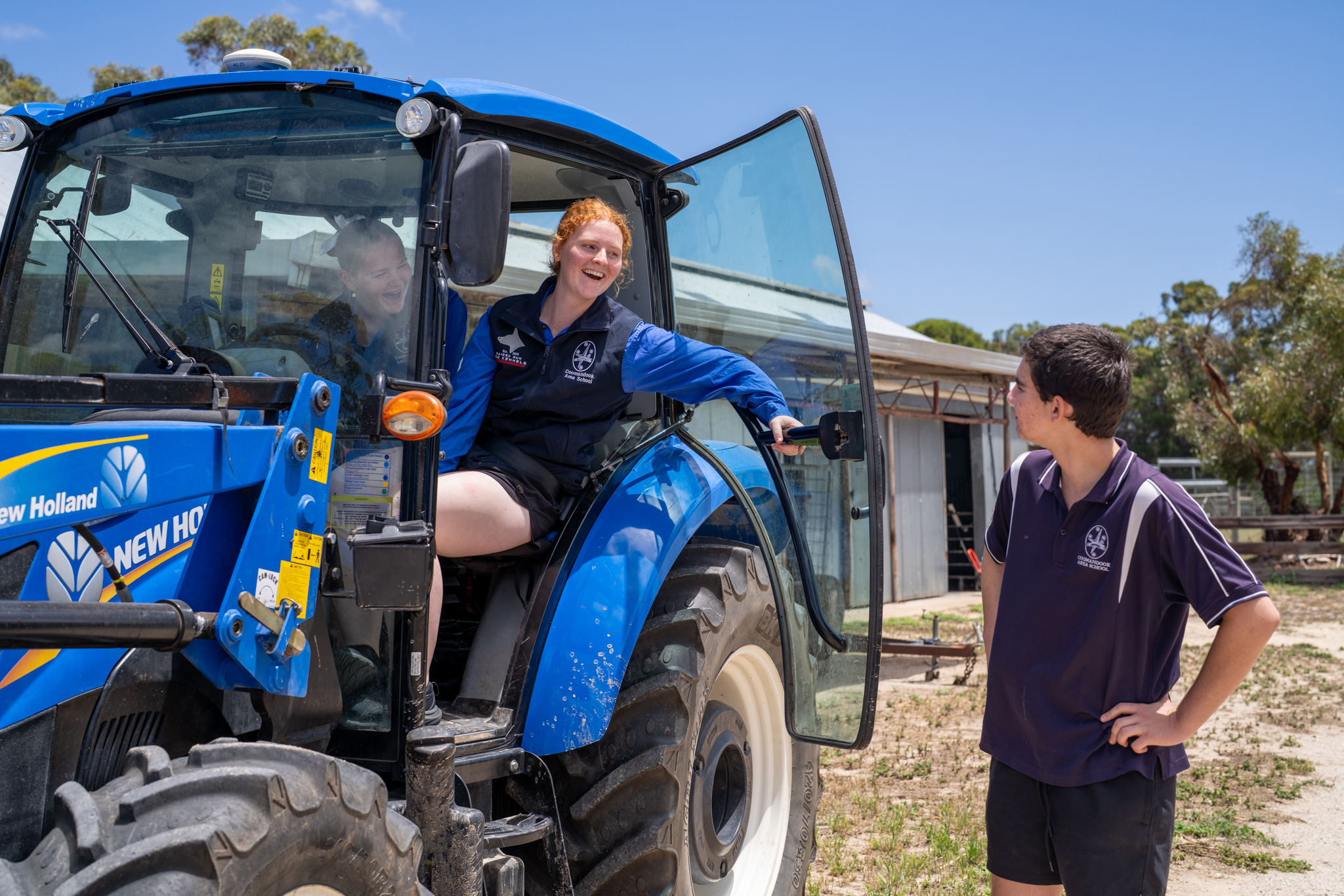 Our PRAC (Philip Roberts Agricultural Centre) contains industry standard infrastructure for a broad range of fields including the Breed Elite sheep management system and our pig eco shelter. We are also looking forward to the installation of new cattle yards including safe work zone and force yard. Students develop their skills in livestock management in facilities that prepare them directly for the professional workplace. The PRAC also includes four cropping paddocks where students use our GPS equipped tractor to implement their cropping program.