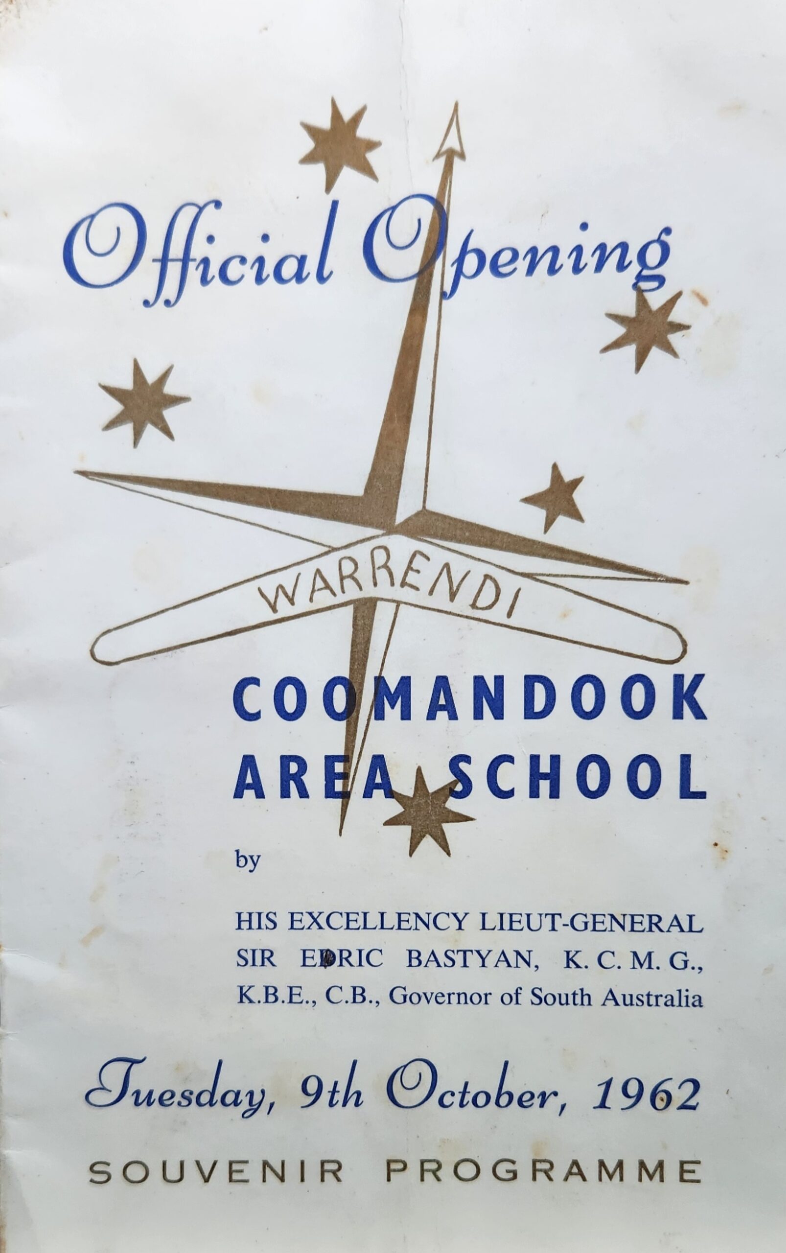 Coomandook Area School was officially opened in 1962 by the Governor of South Australia at the time, Sir Eric Bastyan. The founding Principal, Mr John Steinle, led a small team of five teachers, 135 primary and 38 secondary students. In the early days, teachers also fulfilled the role of school bus drivers, ensuring that students from surrounding rural areas could access education, reflecting the school’s commitment to supporting its isolated communities.
